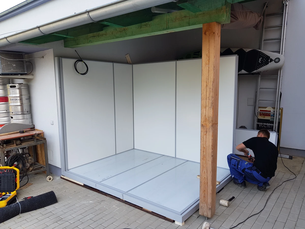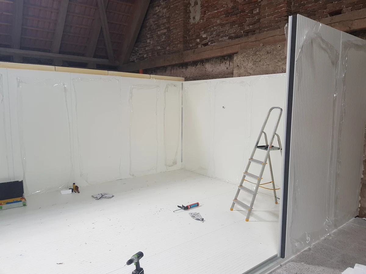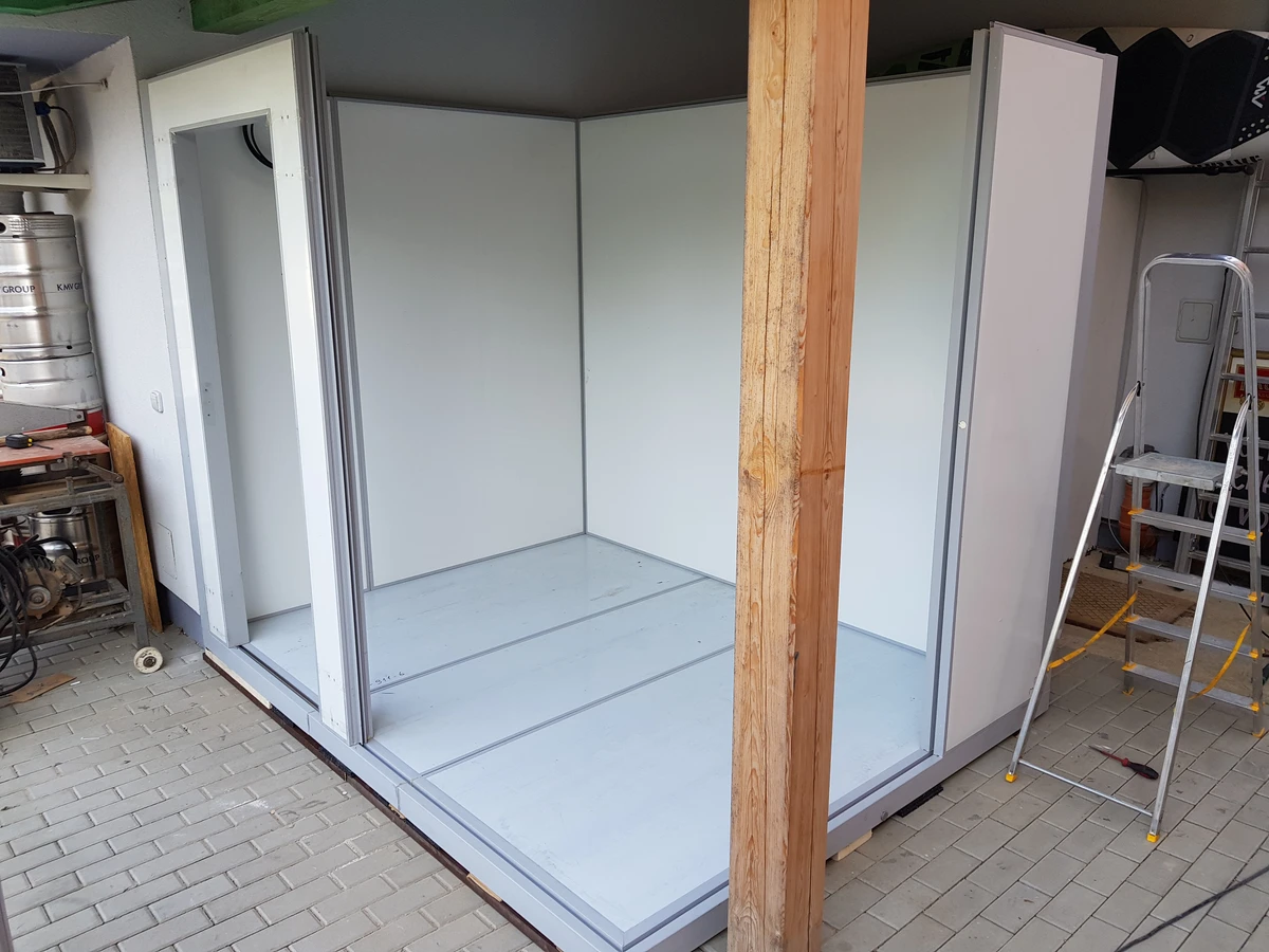 Druhá kategorie jsou panelové boxy montované. Je to systém kdy jsou panely dodávané na určité předem zvolené délky a ty jsou potom instalovány do daného místa. Panely se k sobě instalují pomocí silikonového fungisidního tmelu a nýtováním. Veškerá ukončení a rohy jsou zakryty plechovými lakovanými lištami nebo hygienickými podlahovými a rohovými lištami. Tento způsob skýtá neomezenou variabilitu vůči rozměrům a tvarům prostoru do kterého jsou instalovány. Dále je možno do těchto panelů instalovat různé typy dvěří, oken a servisních vstupů. Tento systém je pracnější s delší dobou instalace, ale z našeho pohledu daleko kvalitnější.