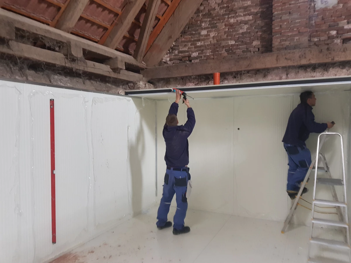 Druhou neméně obsáhlou činností naší firmy jsou polyuretanové a minerální izolace. Předmětem této činnosti je výstavba chladicích boxů, mrazicích boxů, expedičních skladů opláštění výrobních prostor včetně chladírenských a mrazírenských dveří jak otočných, tak posuvných ( ručně, strojně ), oken, vrat apod. Toto opláštění a izolace splňují ty nejpřísnější hygienické a veterinární předpisy.